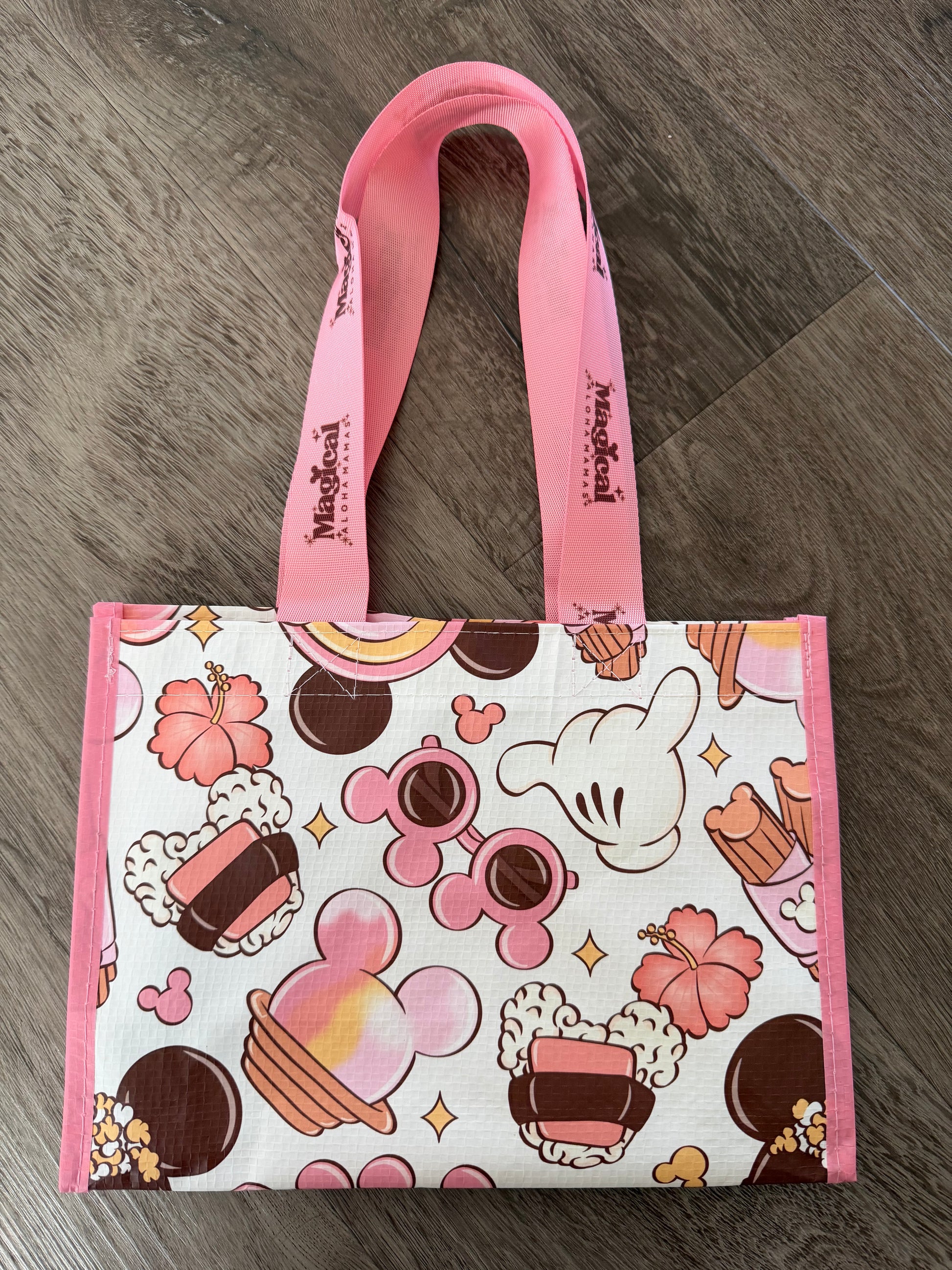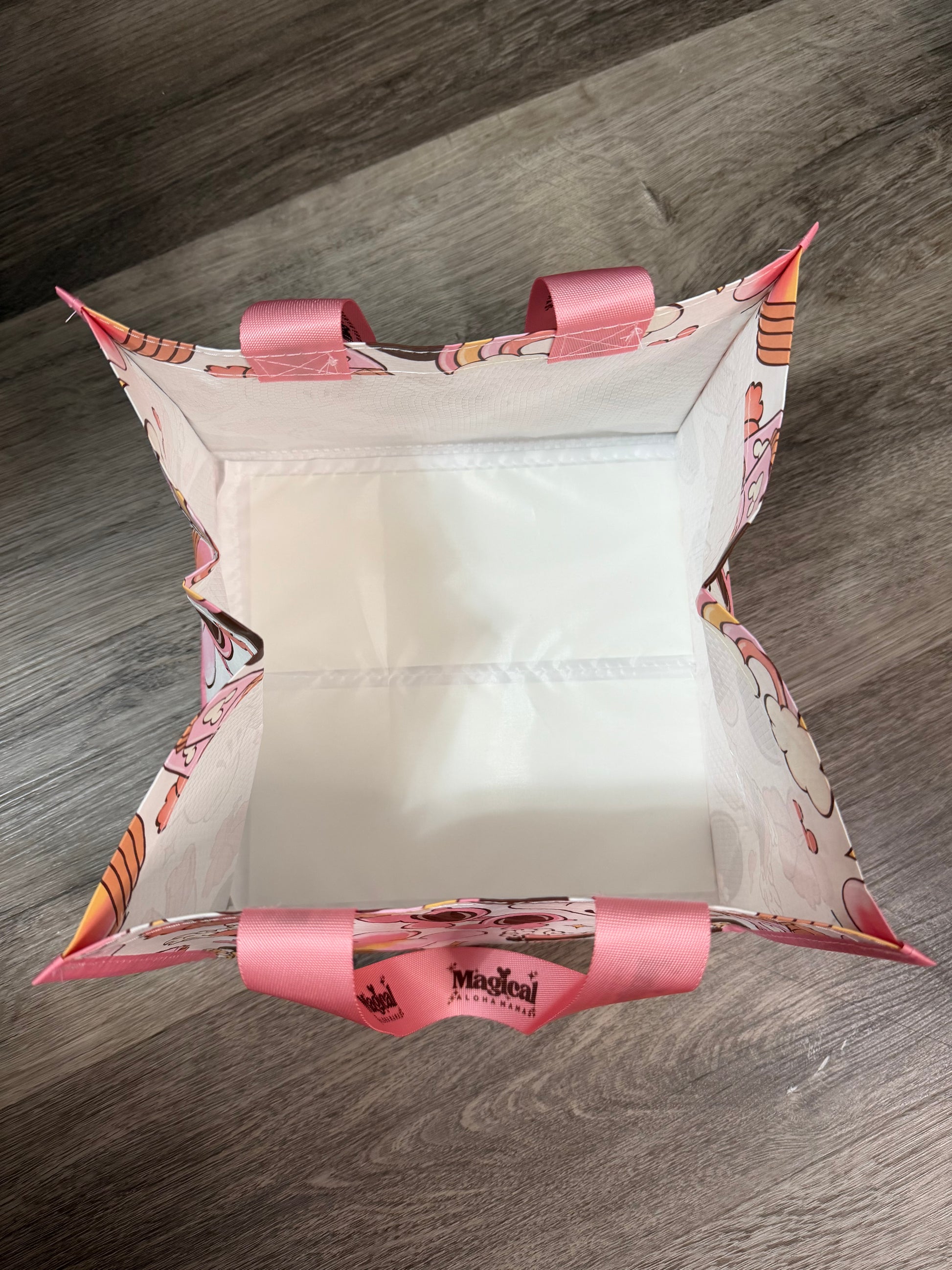 This bag was customized to fit local plate lunches and help you transport it from point A to point B. It can comfortably fit 2 plate lunches and a 3rd can be added if needed. We added in a waterproof base for the bottom to help give a sturdy foundation.